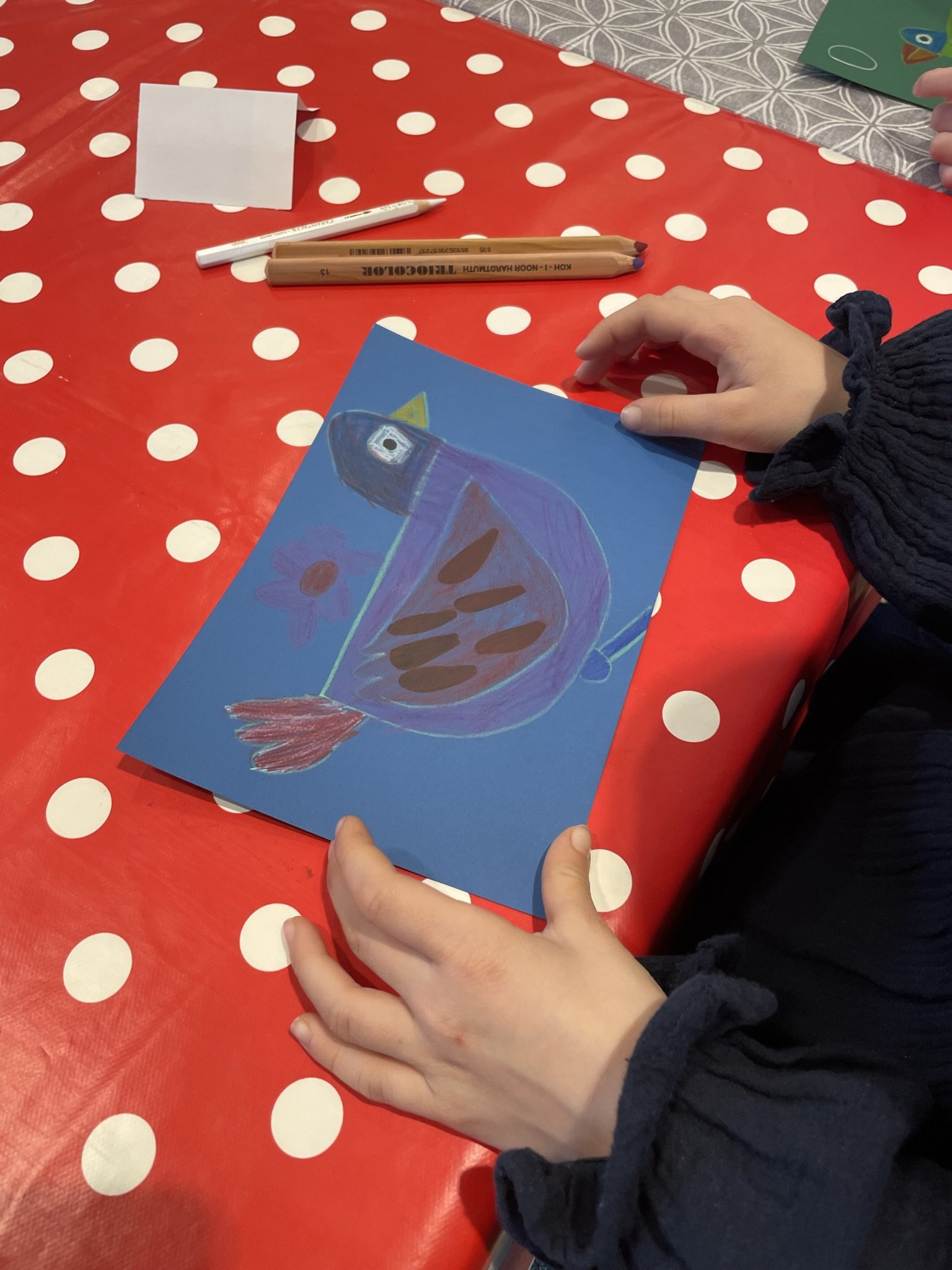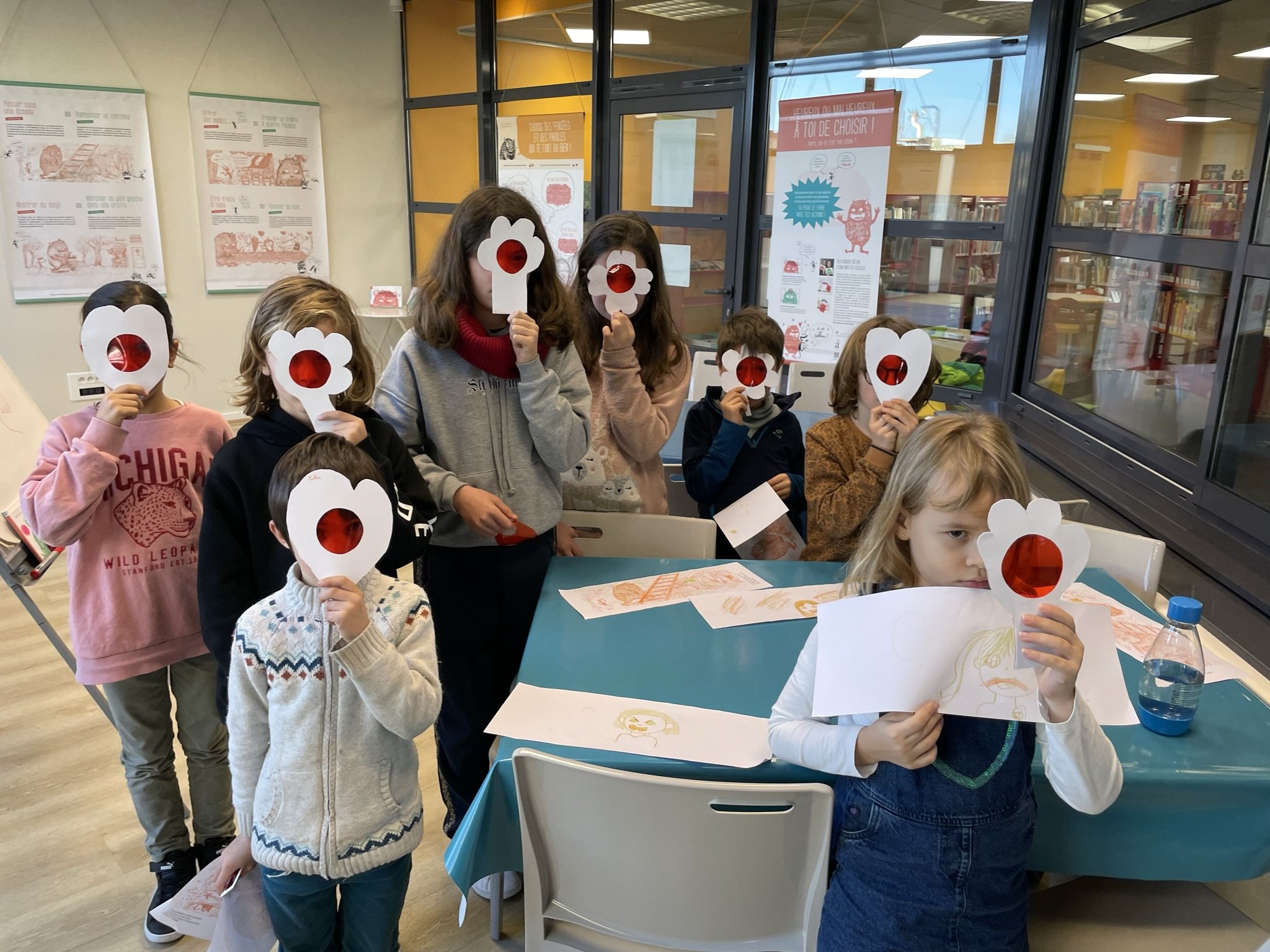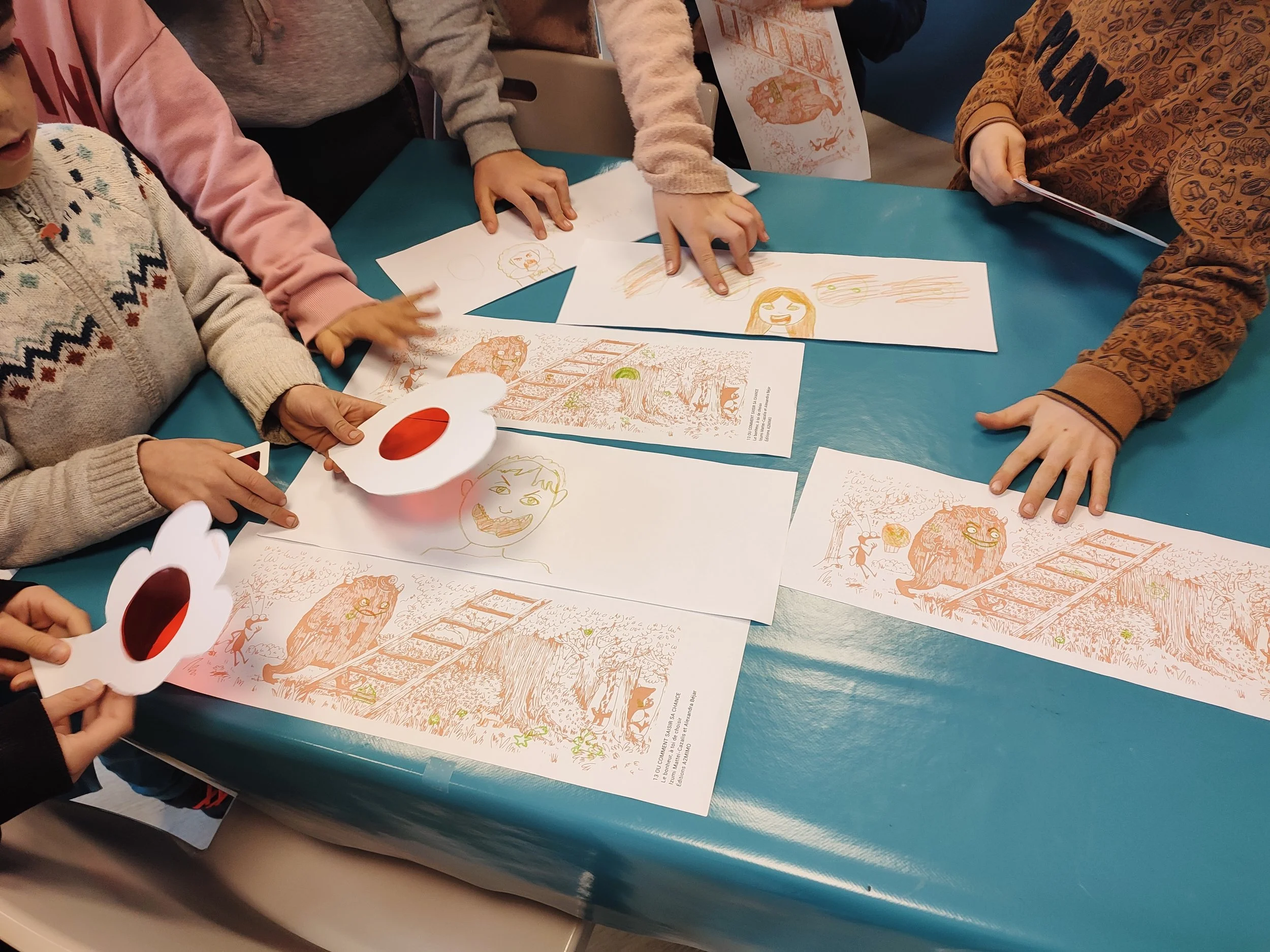 L’atelier du CP au CE2 consiste à apprendre aux élèves à dessiner le monstre de nos livres avec différentes émotions puis à dessiner des porte-bonheurs qui seront révélés grâce au filtre magique.