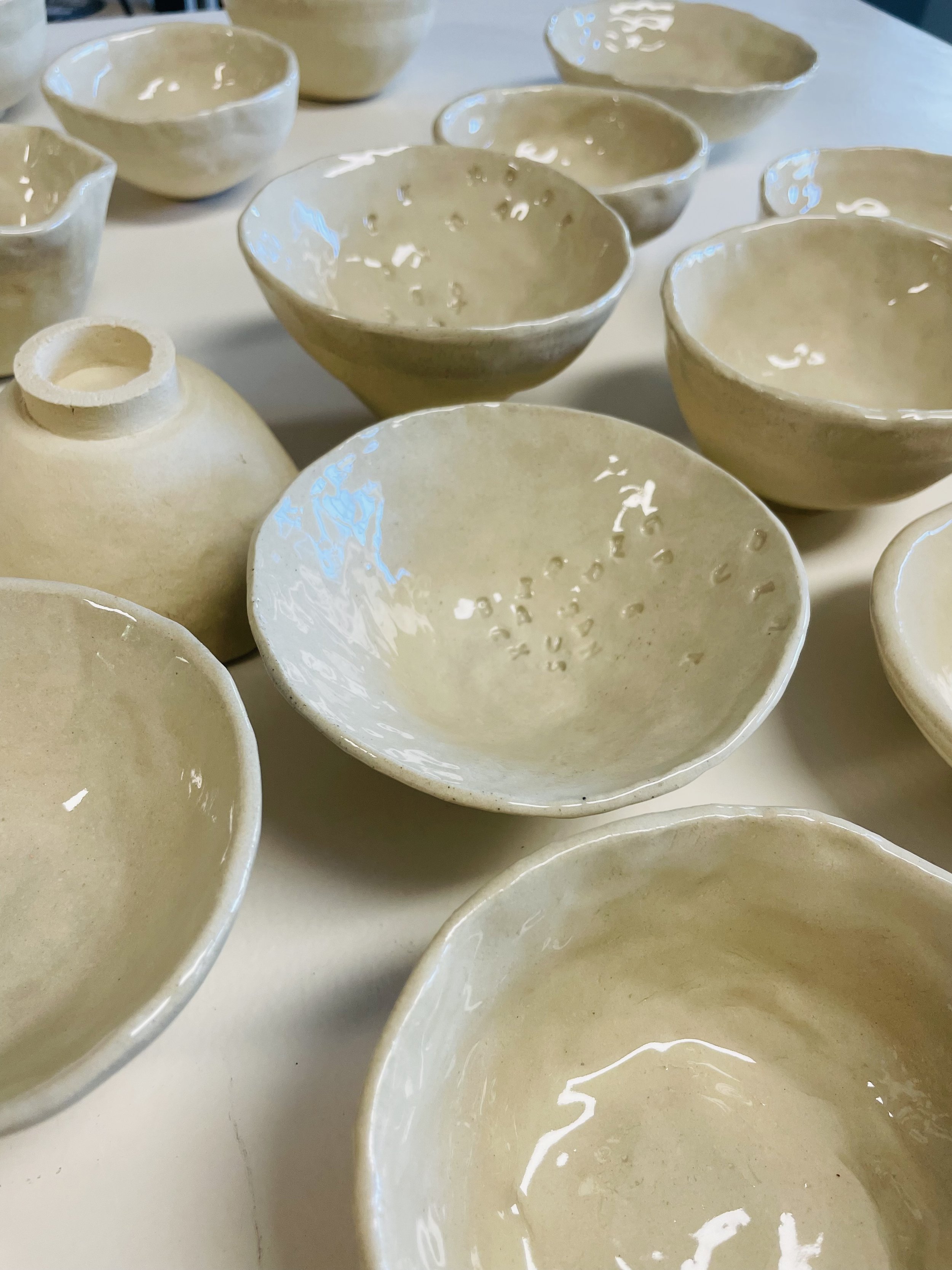 L'atelier accueille les adultes et les adolescents pour un apprentissage autour de la découverte de la terre. Chaque personne est accompagnée dans son projet créatif personnel. Techniques enseignées : modelage (pincé, colombin, plaque), engobe et émaillage.