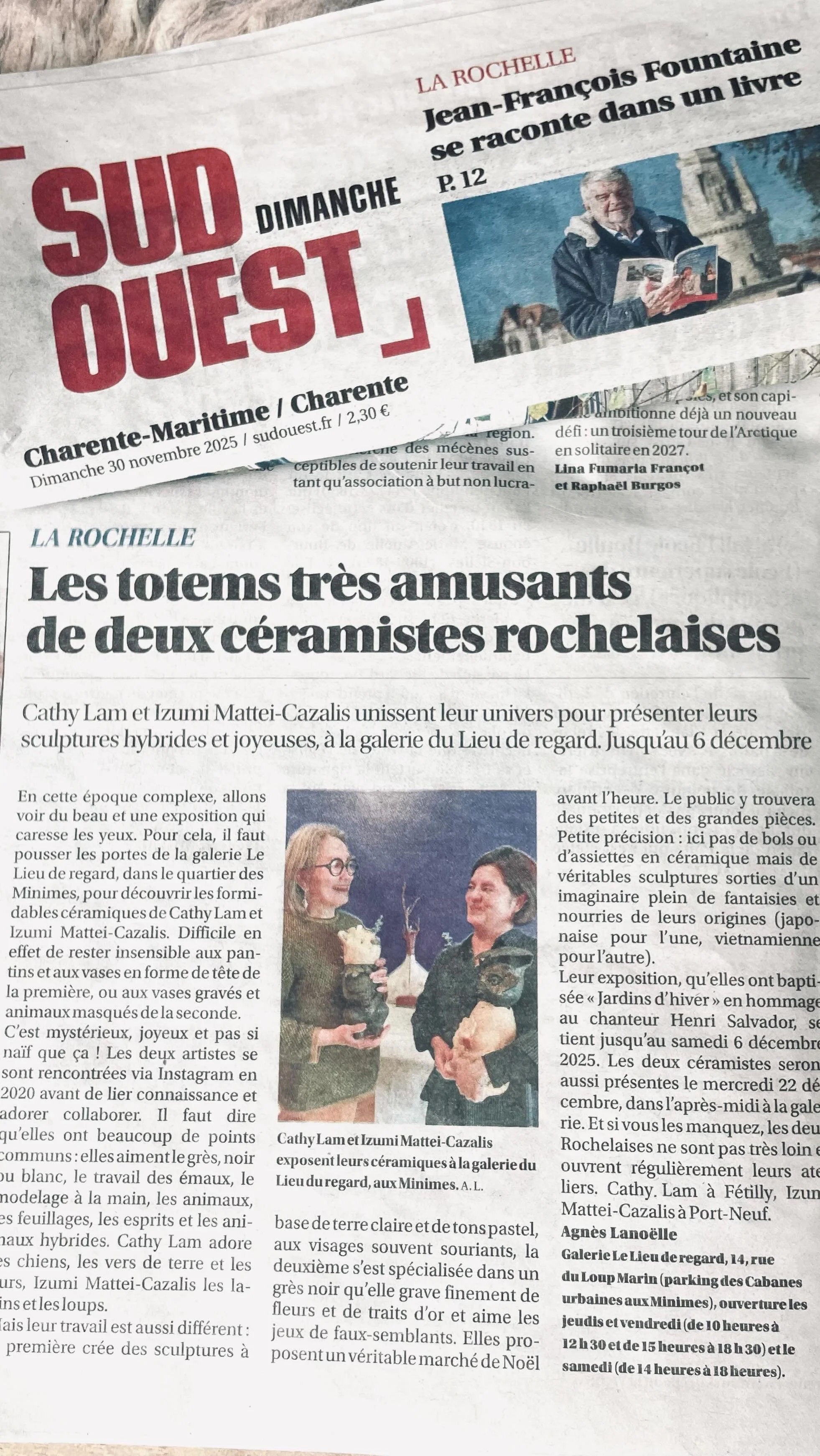 📍 Lieu : Galerie Le lieu de Regard, 14 rue du Loup Marin à La Rochelle