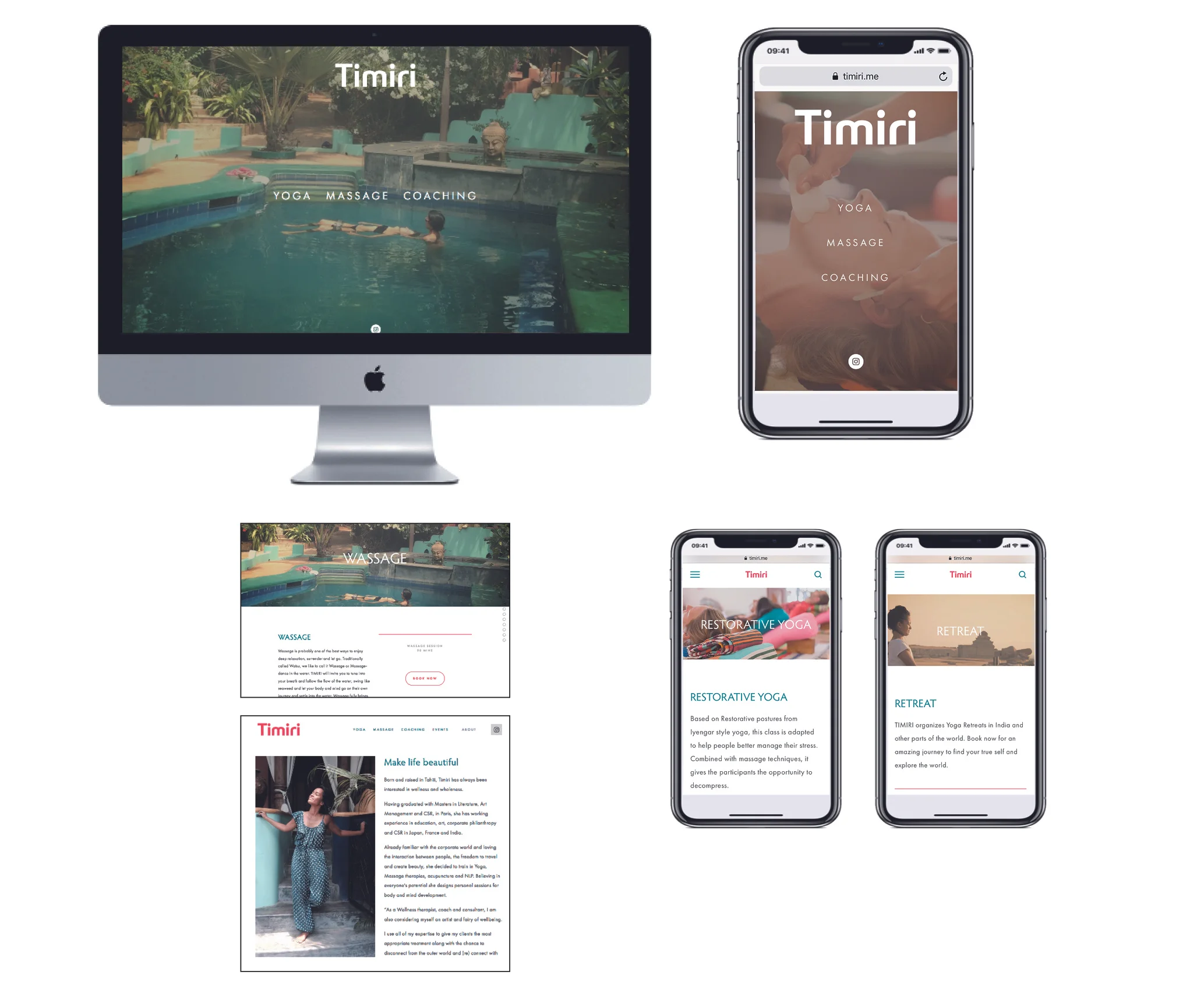 direction artistique : Habillage et design du site web via la plateforme Squarespace et Mise en ligne / création de l'identité graphique de timiri : logotype / cartes de visites / carte cadeau /