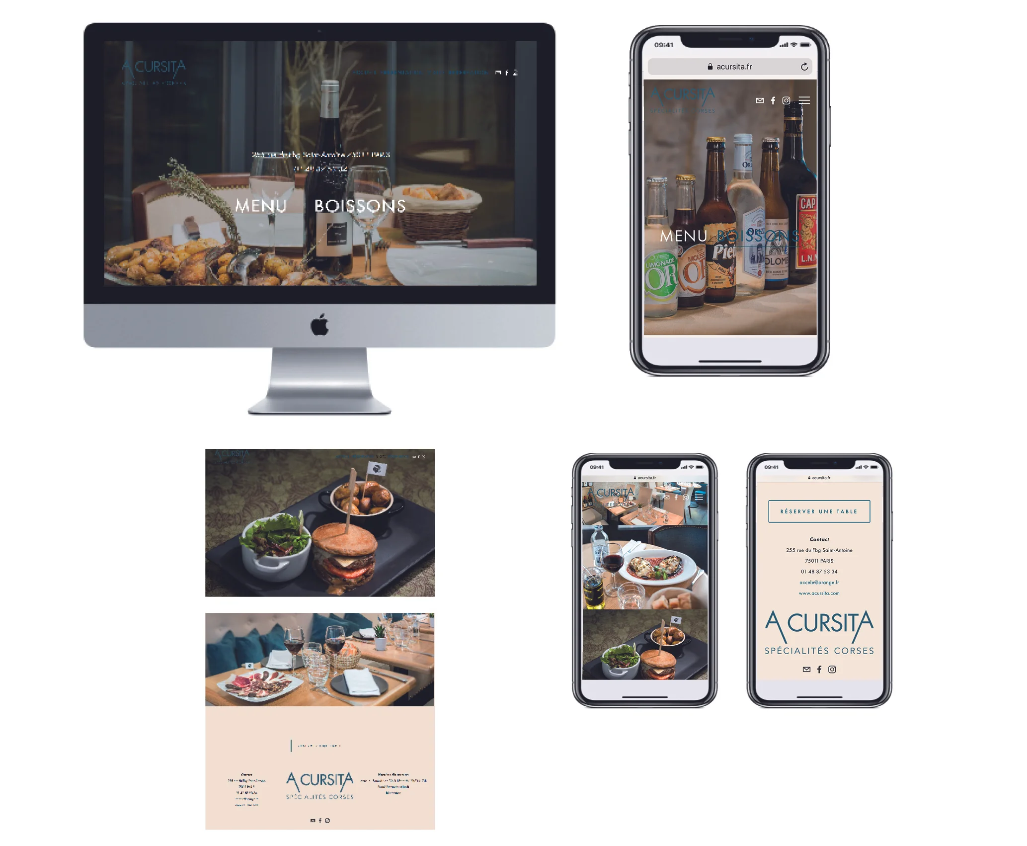 direction artistique : Habillage et design du site web via la plateforme Squarespace et Mise en ligne / réalisé avec la Collaboration du photographe Giuliano Ottaviani / création de l'identité graphique du restaurant : logotype / menu / cartes de visites / pancarte / tampon /